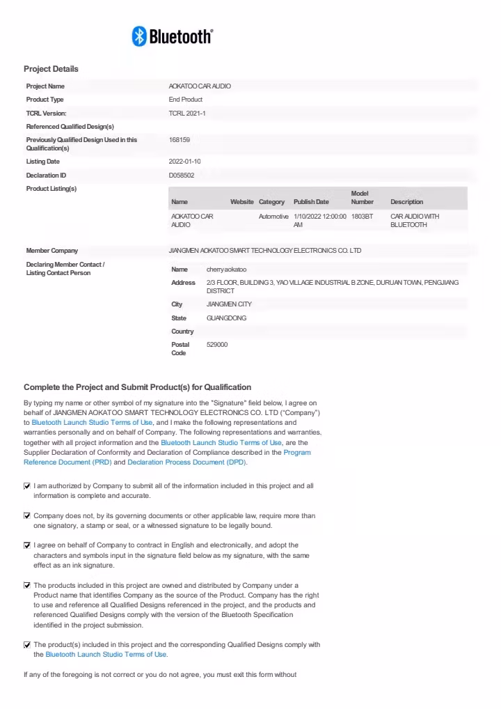 Bluetooth certificate(BSV)