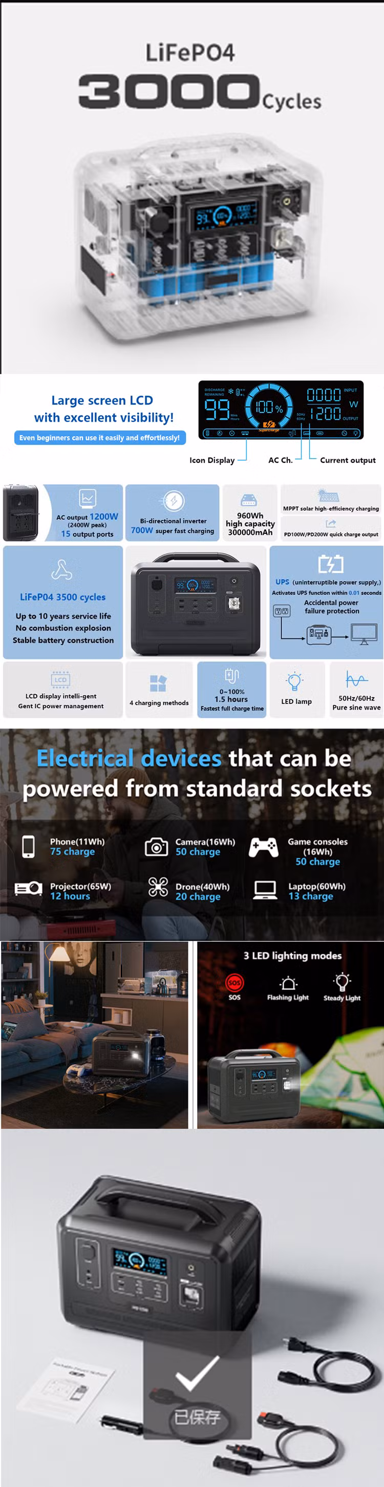 OEM&ODM 1000W 1500W 2000W Portable Power Station with Solar Panel LiFePO4 Battery PD60W Fast Charging 220V Emergency Generator with 200W Travel Camping